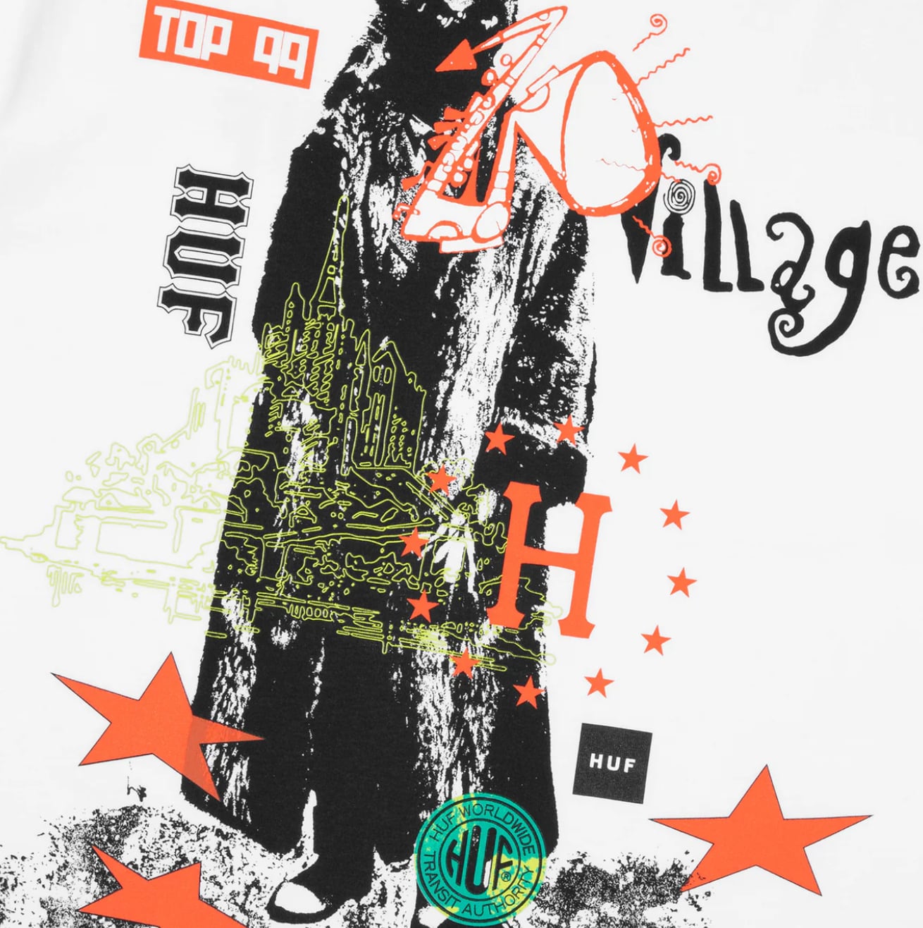地下鉄で使用された記念コインのモチーフ、フリーハンドで描かれたユーモラスなアートワーク、USカレッジに根ざしたデザイン様式、ポップな世界観とリズムで一世を風靡したTVゲーム、世代を超えて愛されるファンタジーの象徴などからインスピレーションを受けたHUFらしいグラフィックをプリントしたTシャツを展開します。