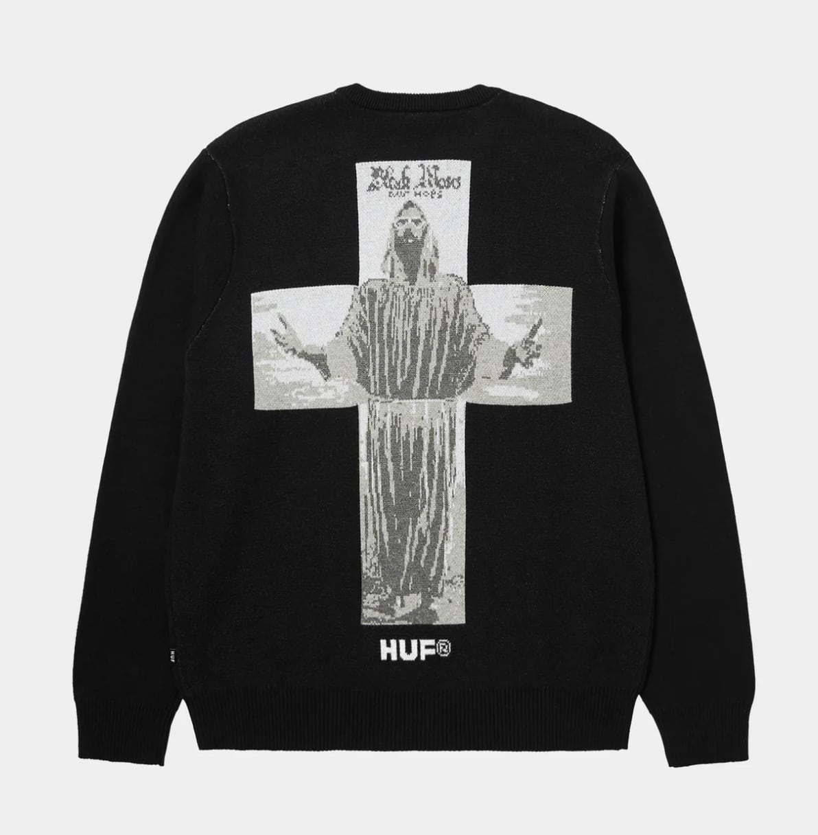 【HUF】HUF X ISAAC HAYES BLACK MOSES KNIT SWEATER ニット セーター【ハフ】