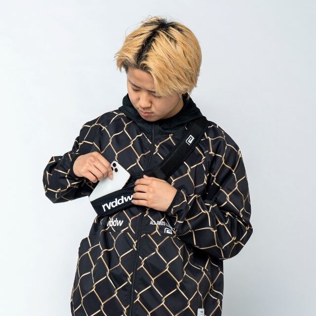 ボディは通気を考慮したメッシュ素材、ポケット部分は表側にストレッチ素材を使用。