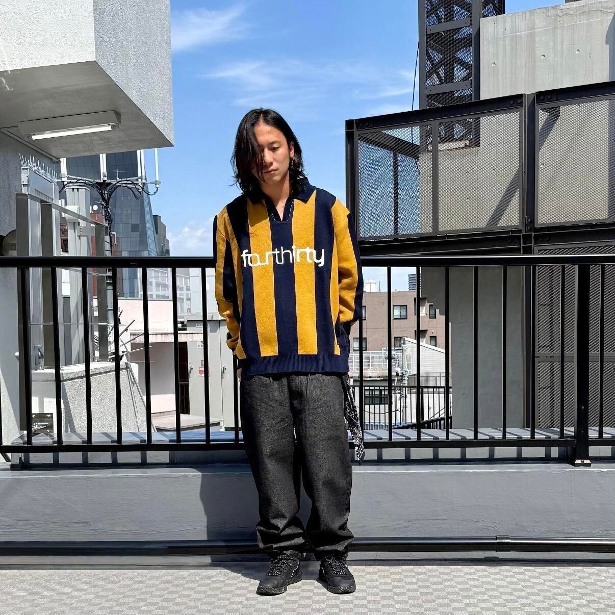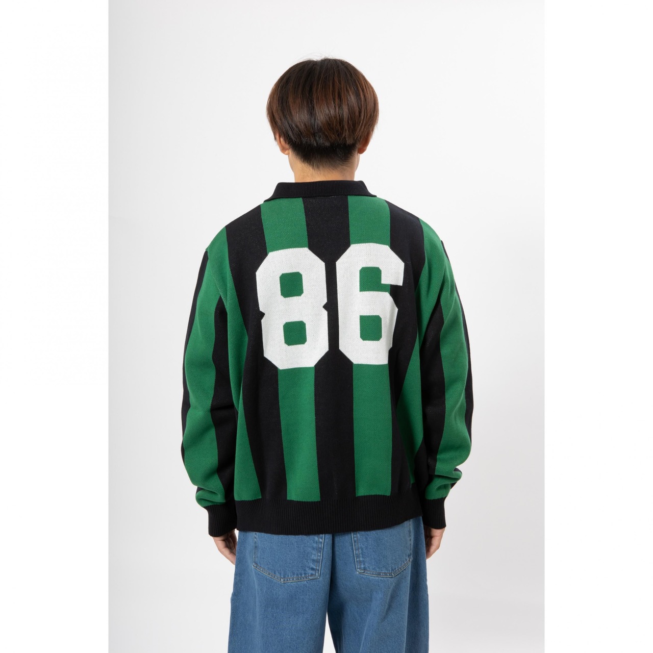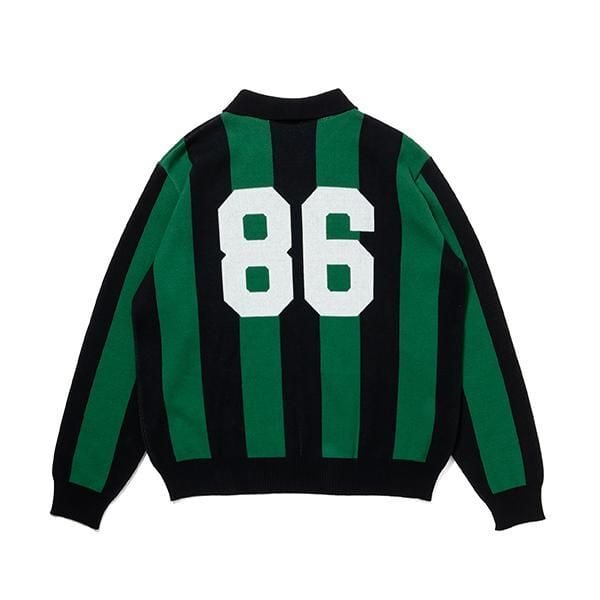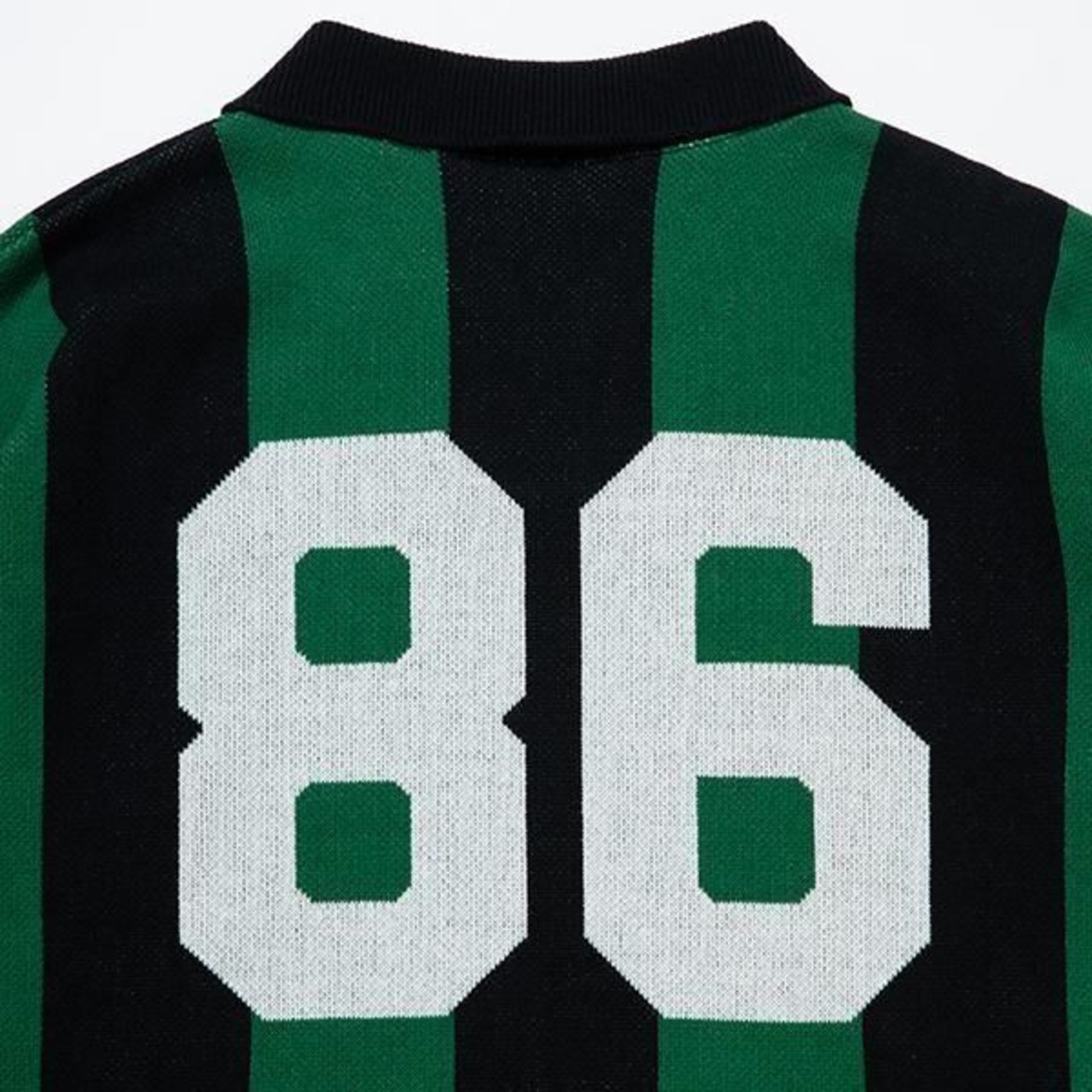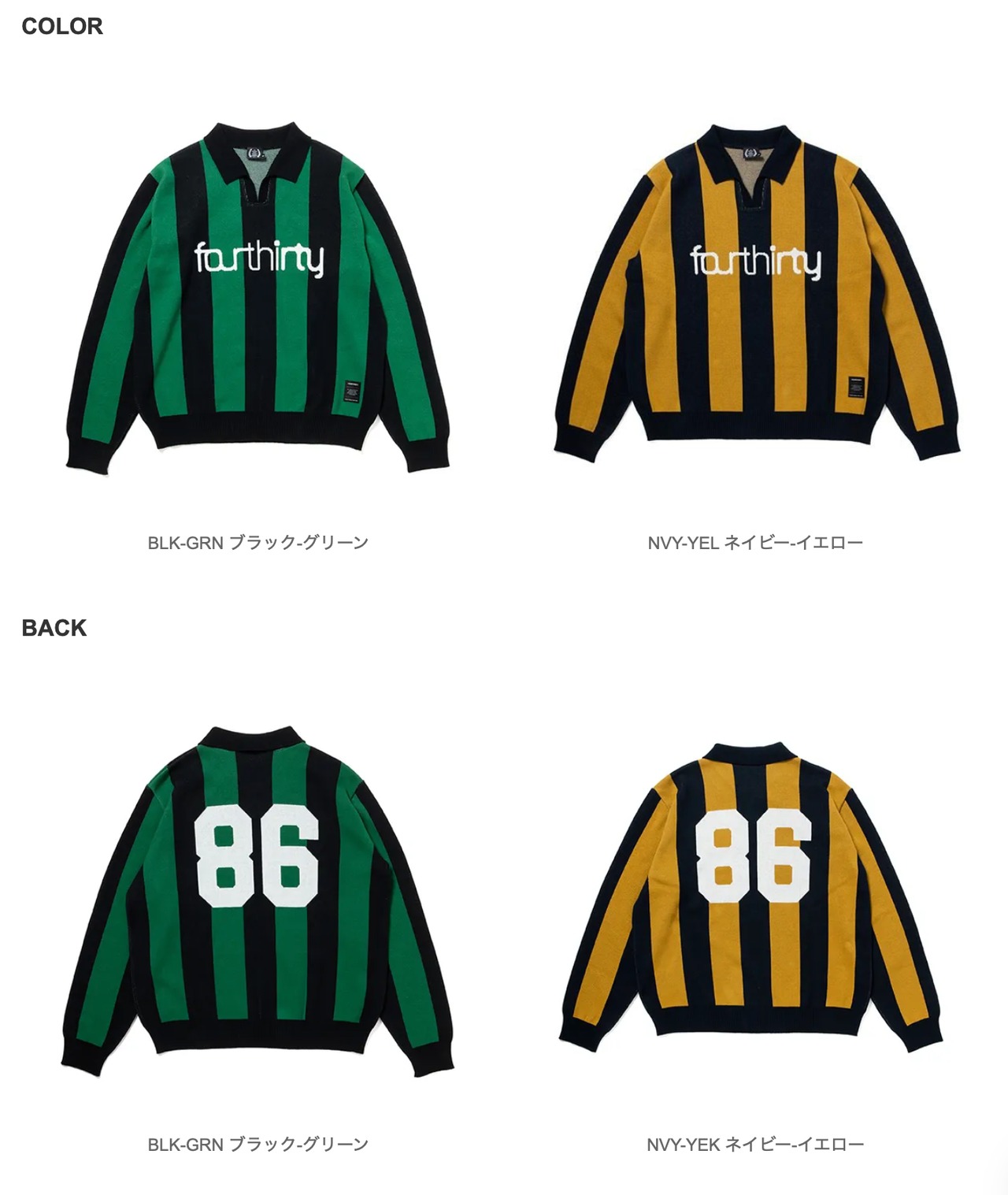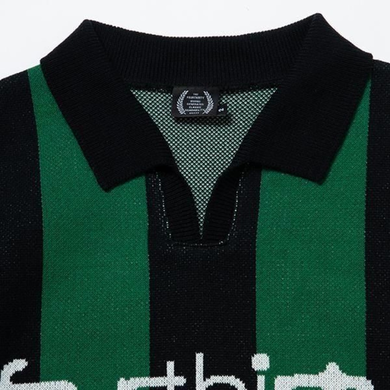 レトロなサッカーシャツのイメージをニットで編み上げたカットソーです。