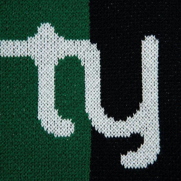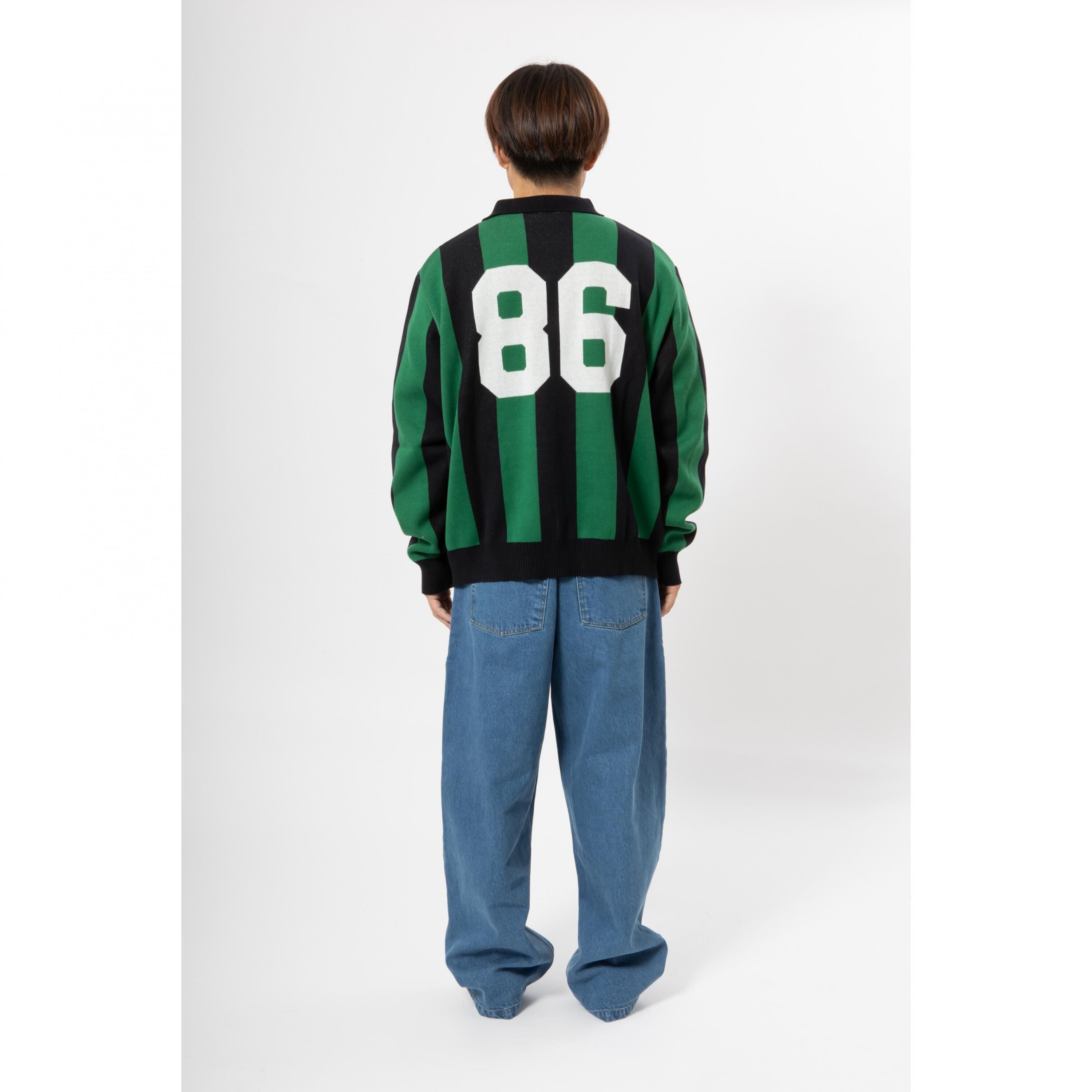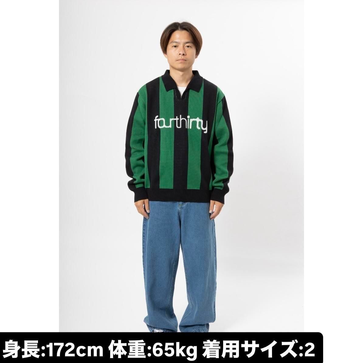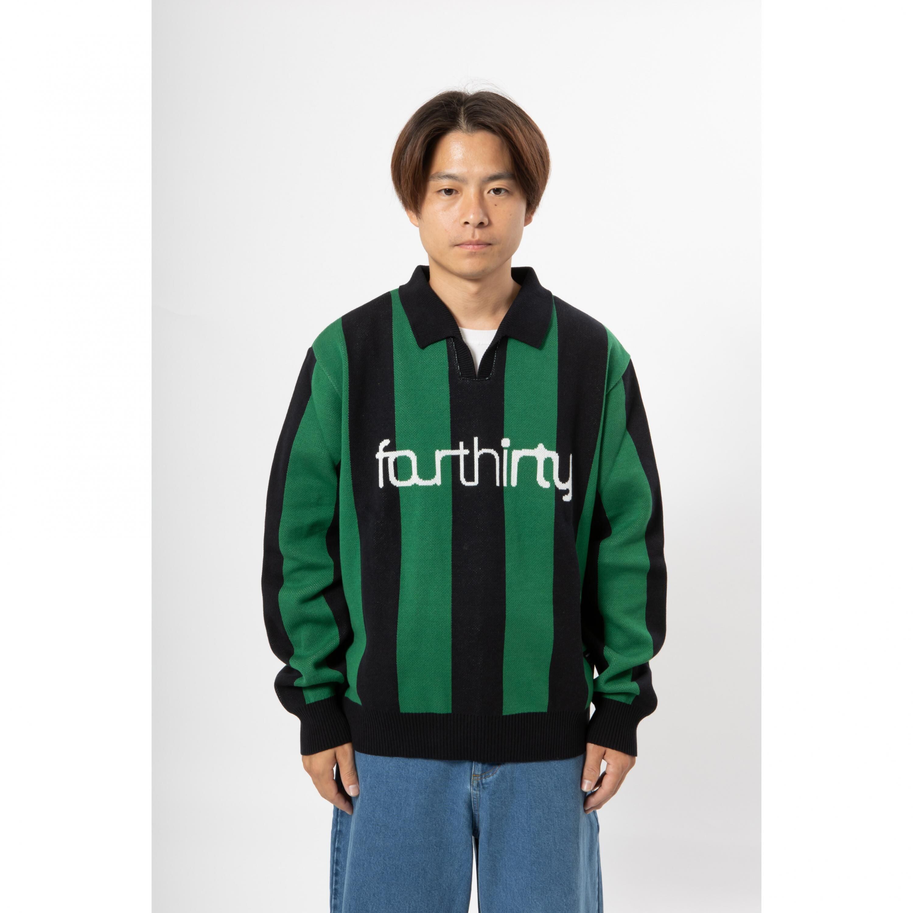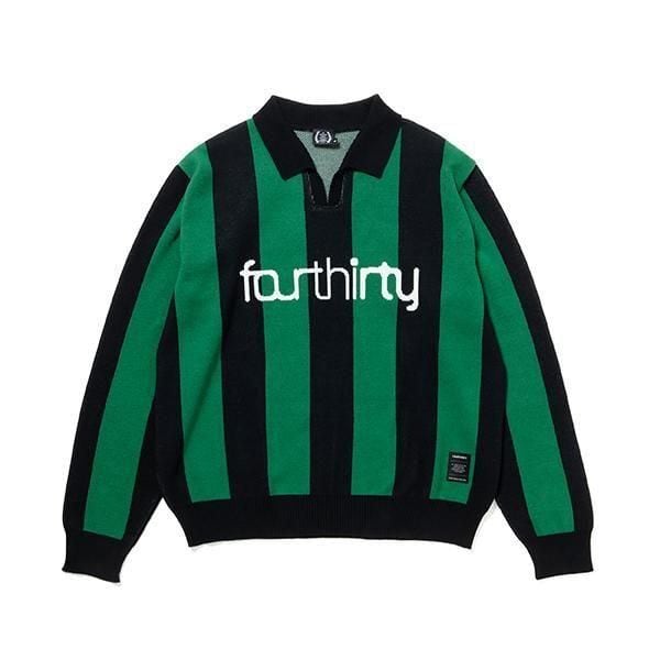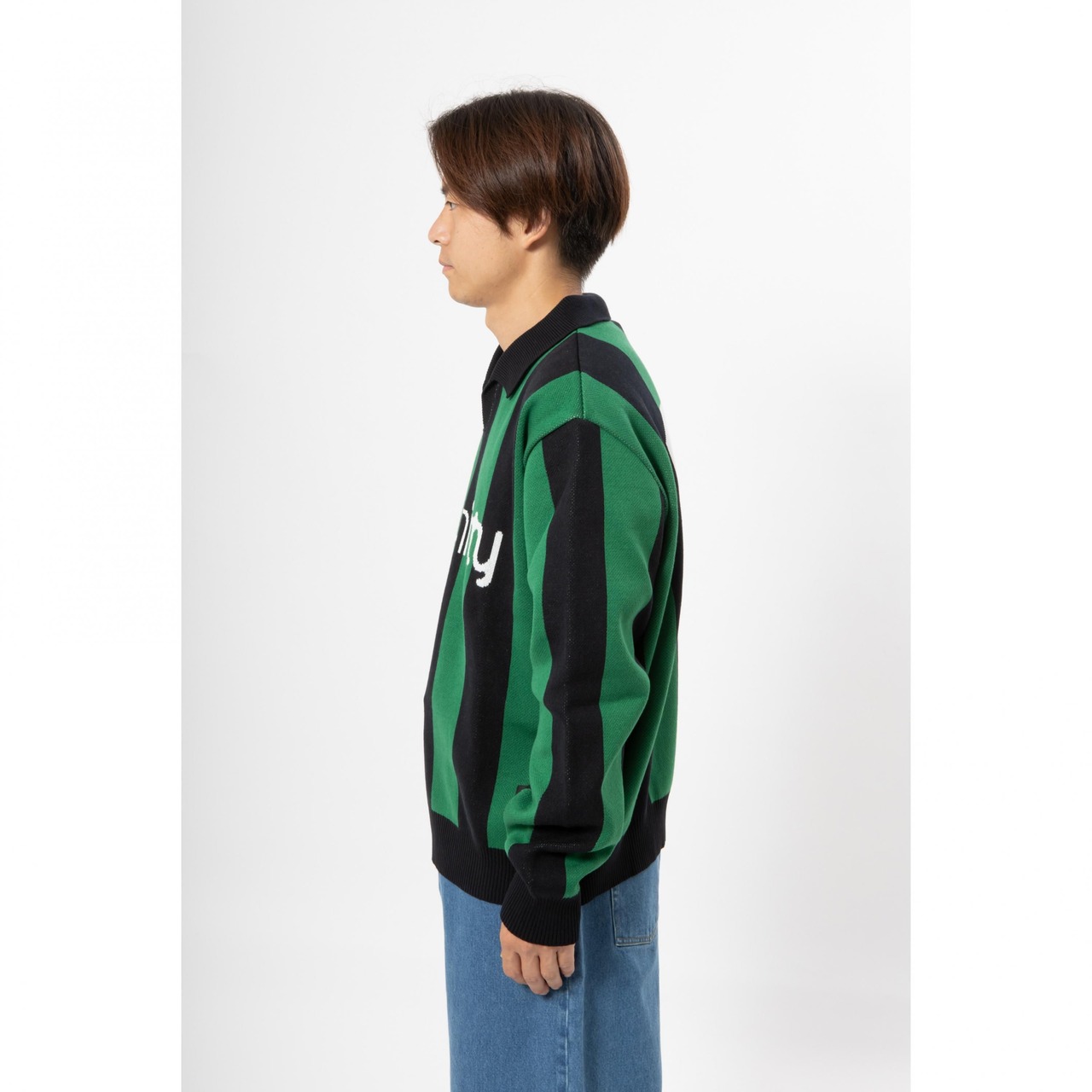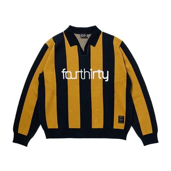 レトロなサッカーシャツのイメージをニットで編み上げたカットソーです。