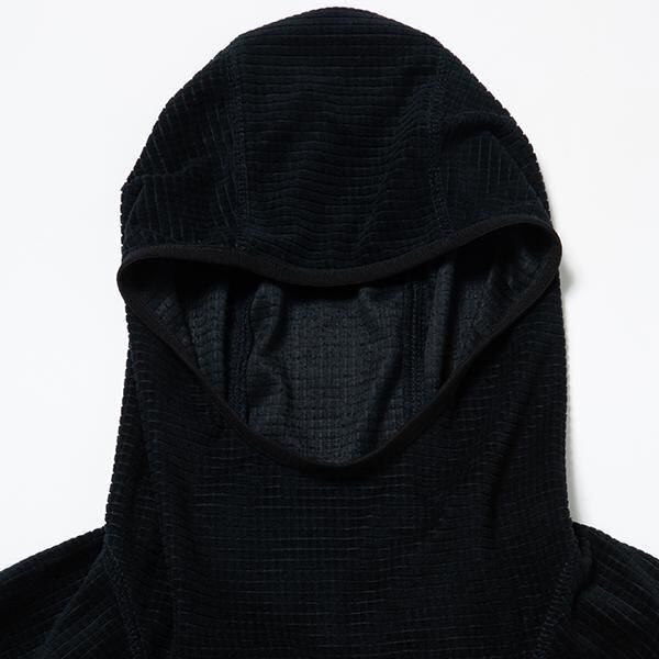 グリッド状に並んだ起毛素材を使用したプルオーバーパーカーです。