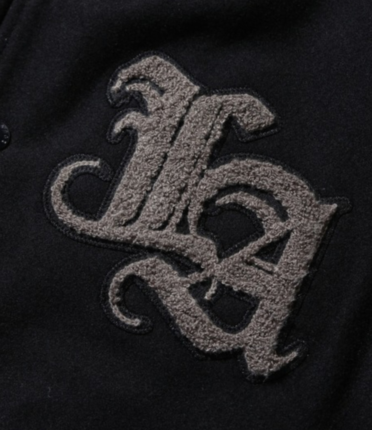 ・全体に配置した刺繍やサガラ刺繍のが特徴のバーシティジャケット。