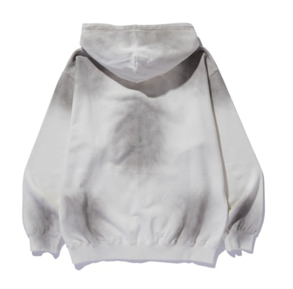 ・スプレーをかけたような特殊加工が魅力のジップパーカー。