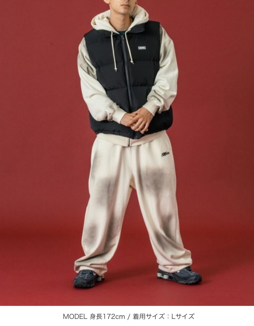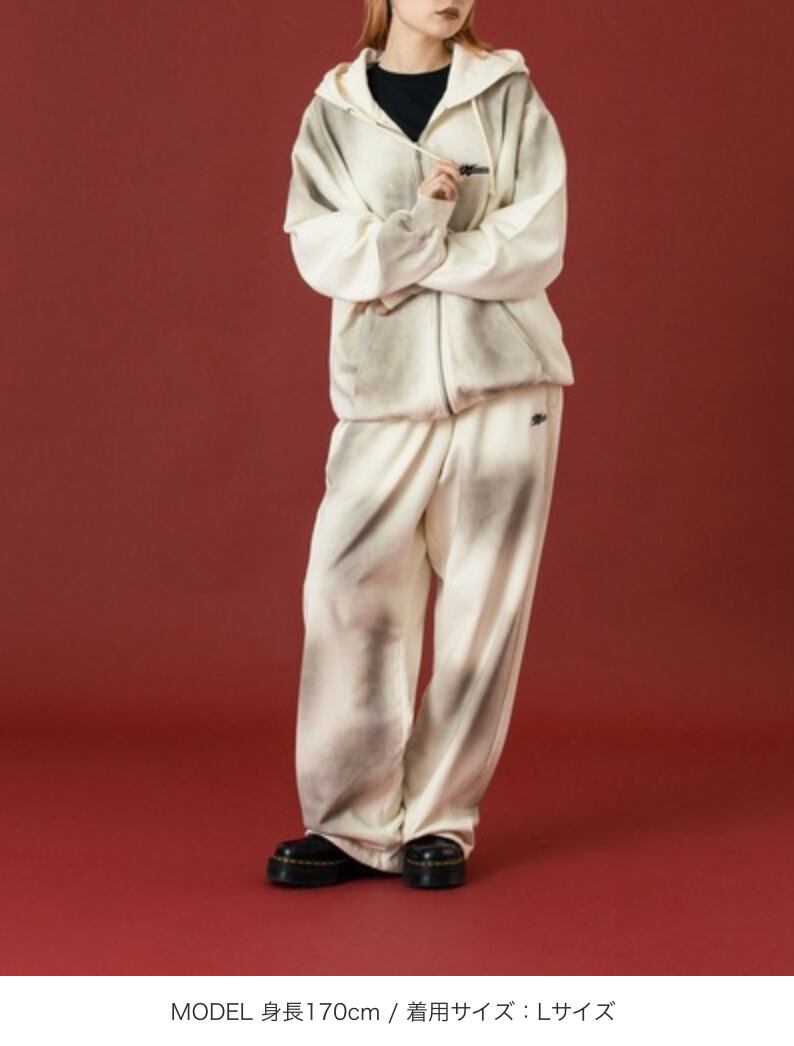 ・スプレーを所々に施した特殊加工が魅力のスウェットパンツ。