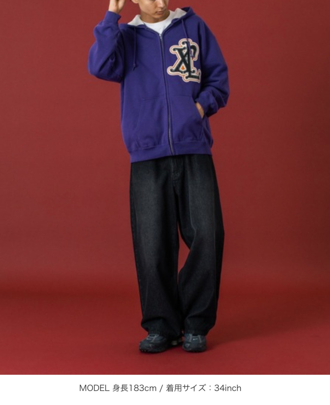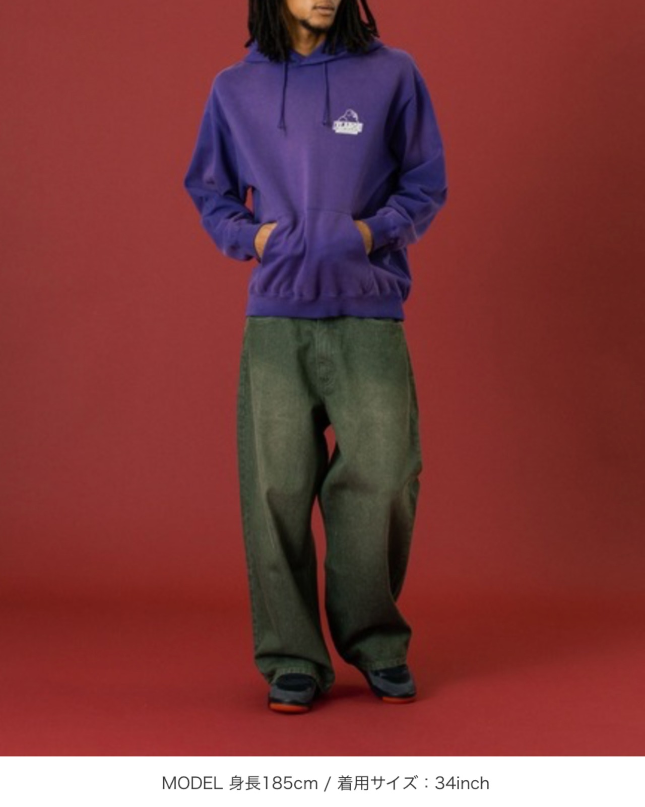 MODEL:34inch 身長:172cm(LtINDIGO) 183cm(BLACK) 185cm(OLIVE)