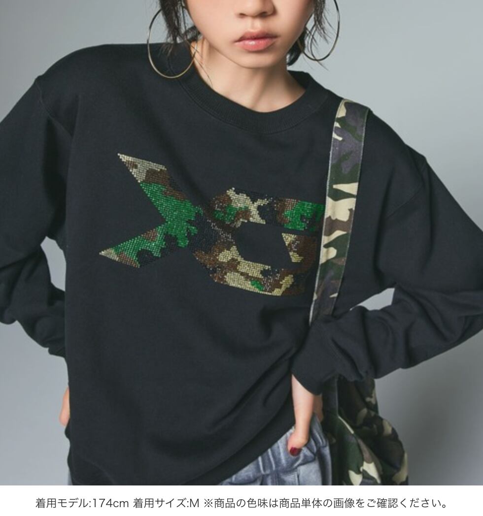 XGロゴを迷彩柄のラインストーンで表現した、キャッチーなデザイン。