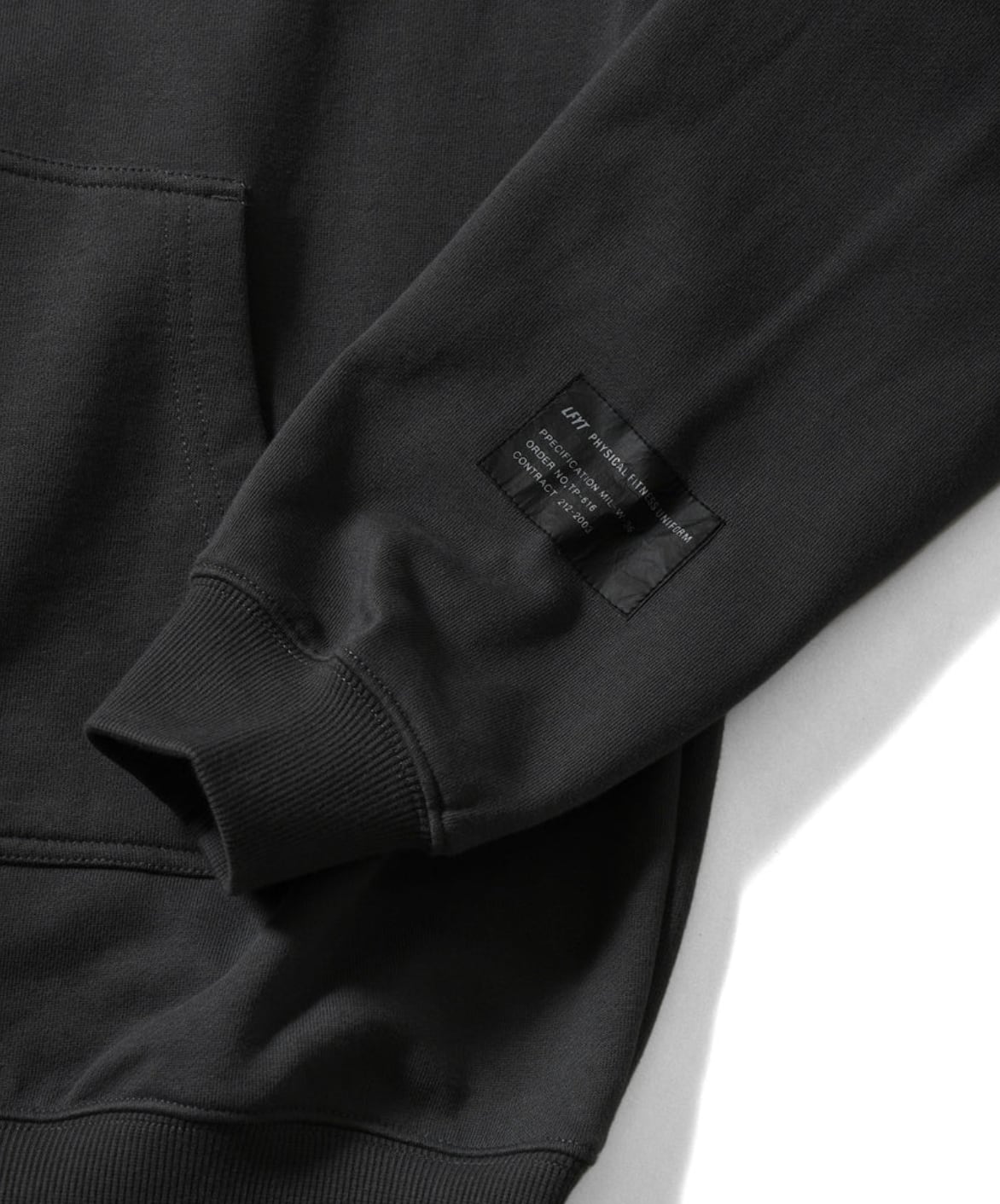 左袖にはミルスペック調デザインのタグを配置し、無骨なミリタリーテイストを効かせています。