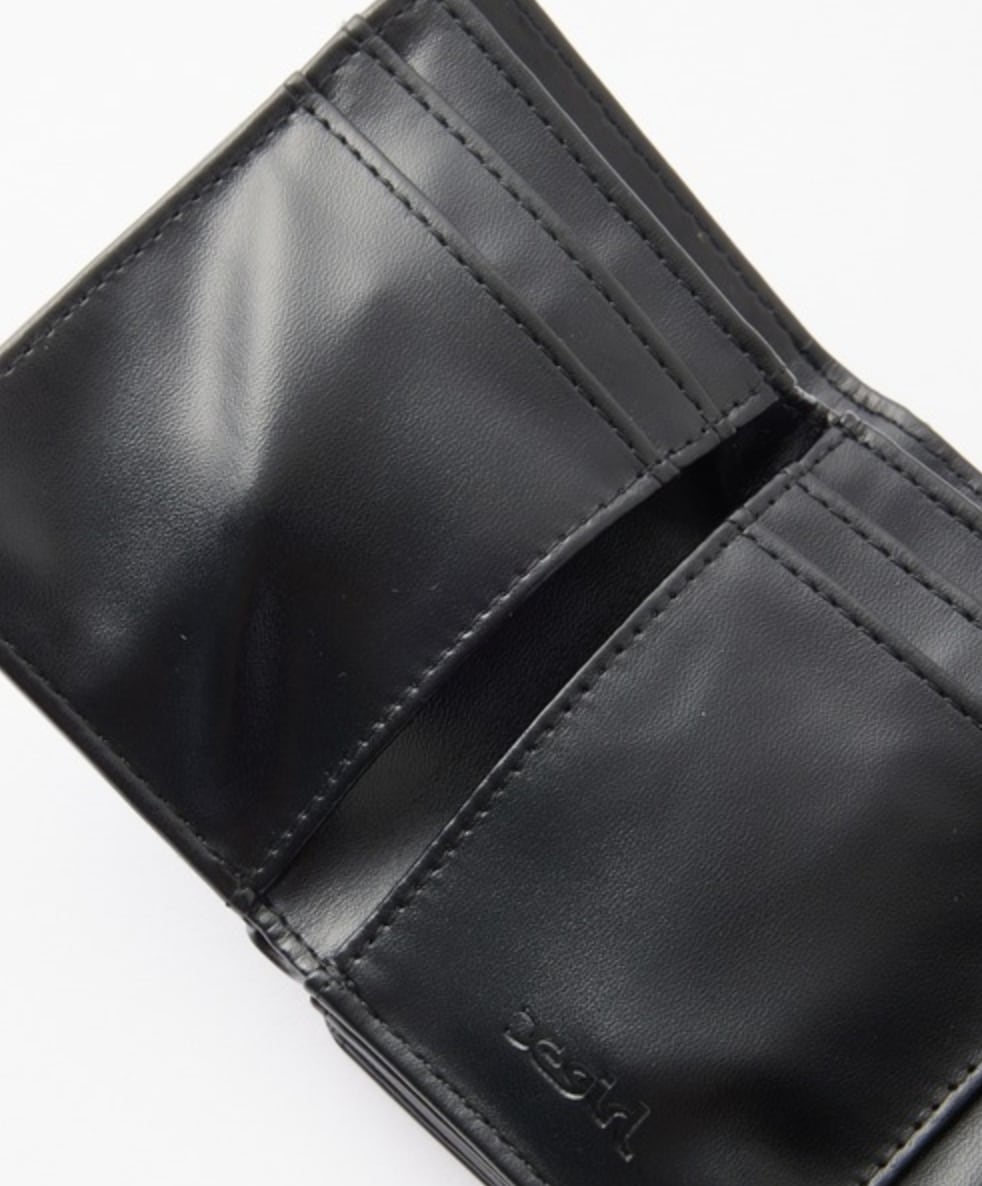 フェイクレザー素材で上品に仕上げた三つ折り財布。
