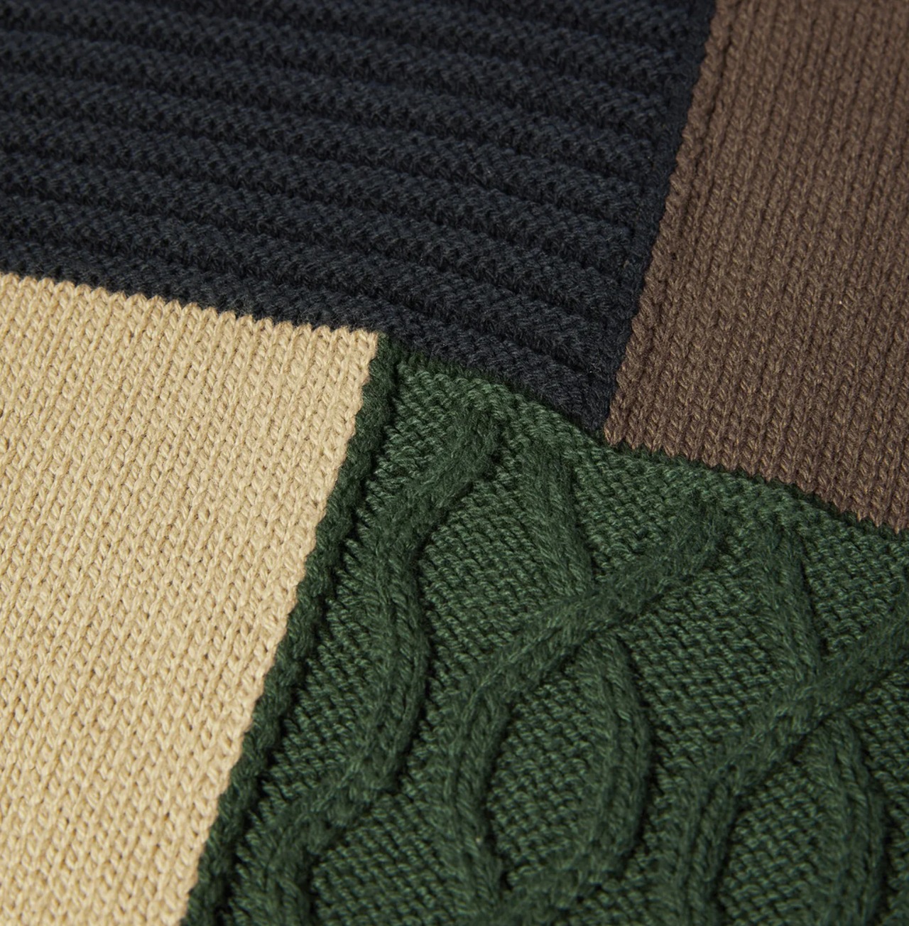 存在感のあるパッチワークパターンが印象的なCOLUMBIA CABLE KNIT SWEATERは、緻密に計算されたデザインとアーストーンの色合いを、クラシックなクルーネックセーターのシルエットに落とし込んでいます。