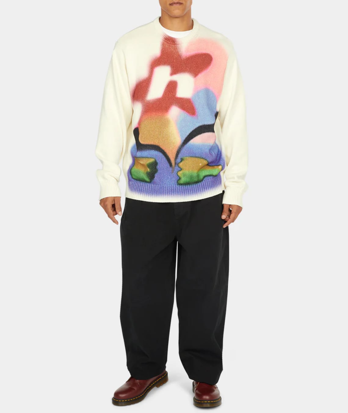 存在感のあるパッチワークパターンが印象的なCOLUMBIA CABLE KNIT SWEATERは、緻密に計算されたデザインとアーストーンの色合いを、クラシックなクルーネックセーターのシルエットに落とし込んでいます。
