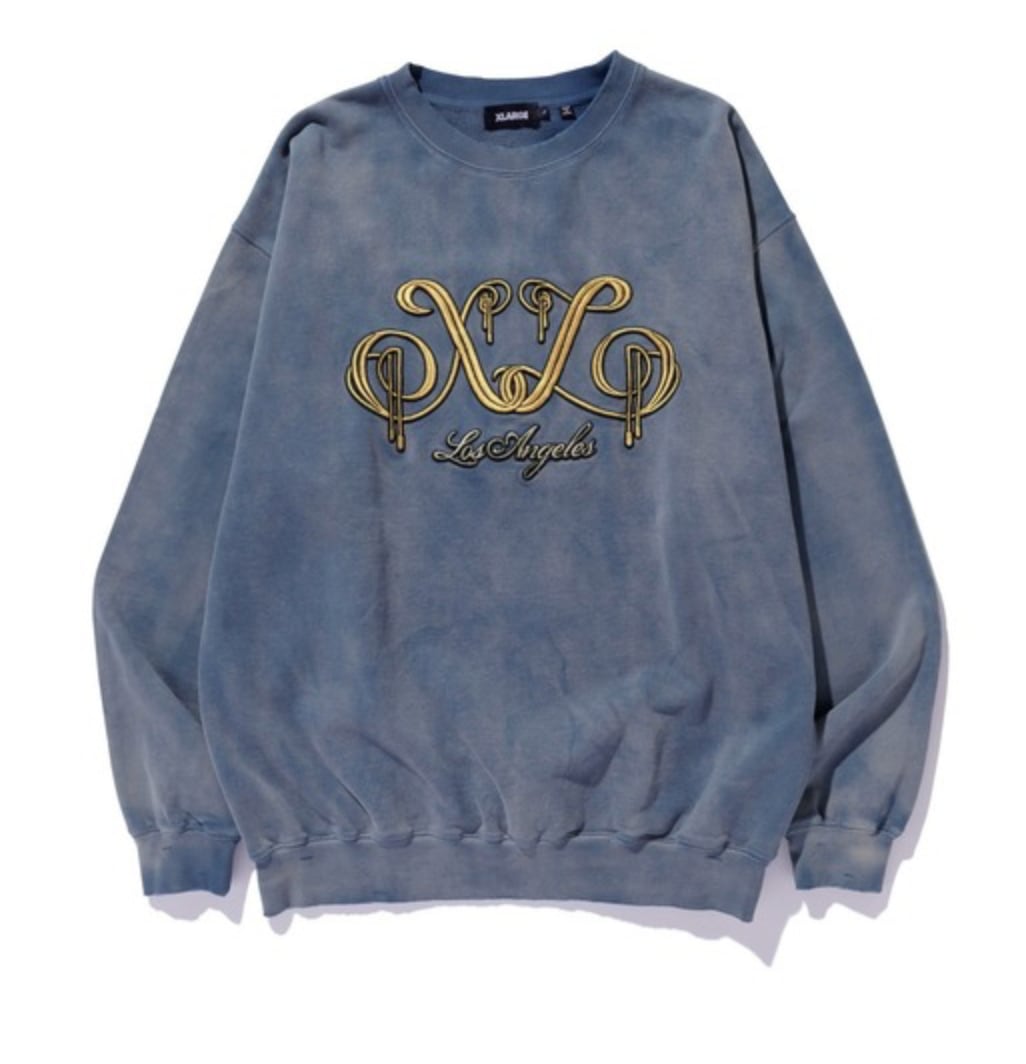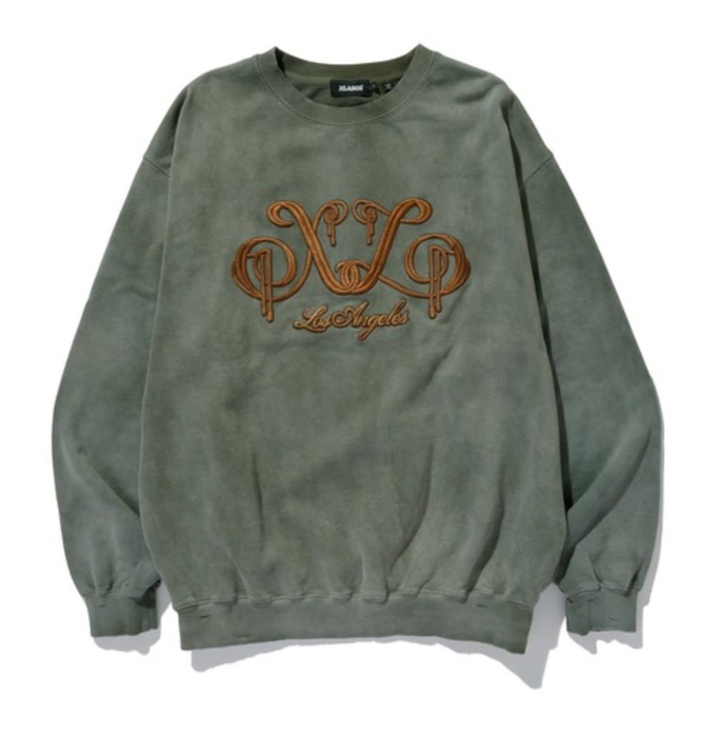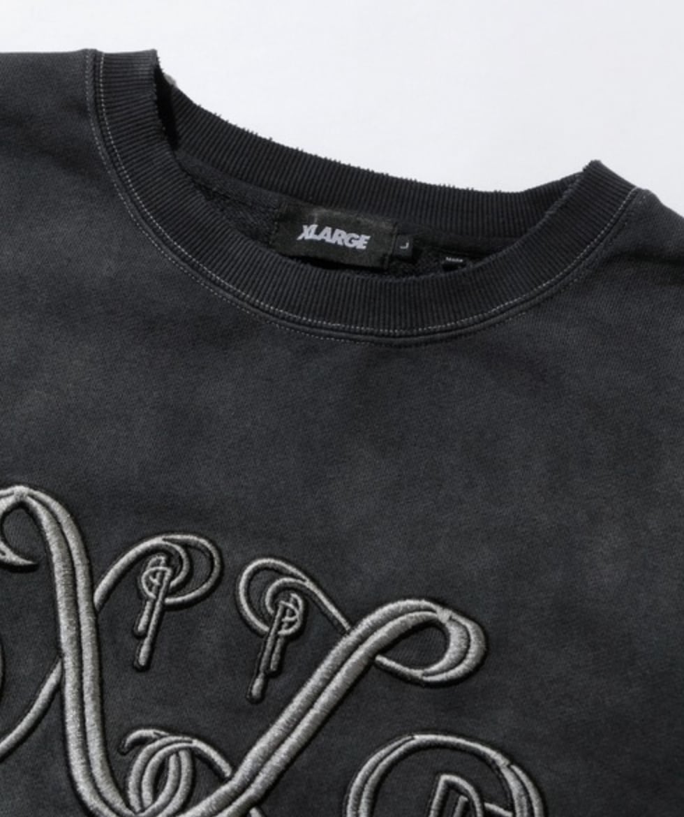 【XLARGE】EMBROIDERED BLEACHED CREWNECK SWEATSHIRT クルーネックスウェット トレーナー【エクストララージ】