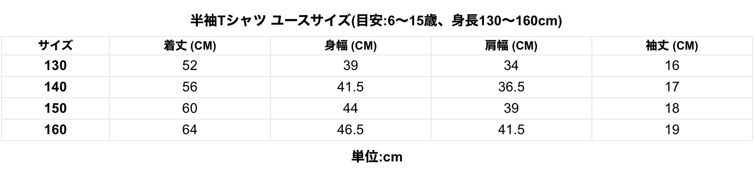 ユースサイズ(目安:6〜15歳、身長130〜160cm)