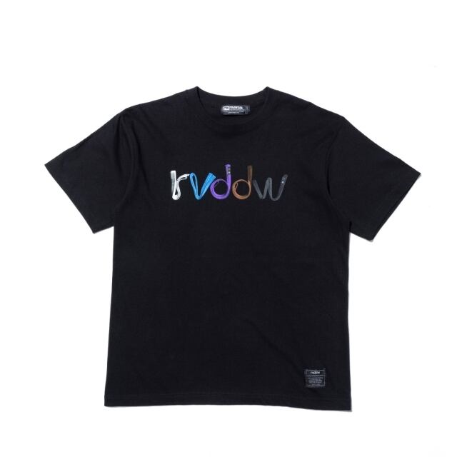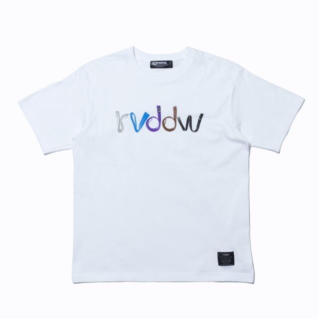 一見柔術の帯カラーのベーシックロゴTEE かと思いきや、アルファベット自体が帯で表現されているという、rvddw らしさ満点のコットンTEE。