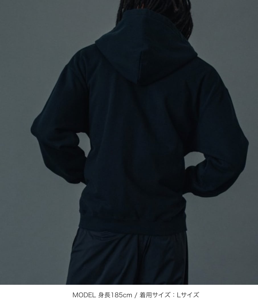 ・フロントのオリジナルロゴが目を惹くジップパーカー
