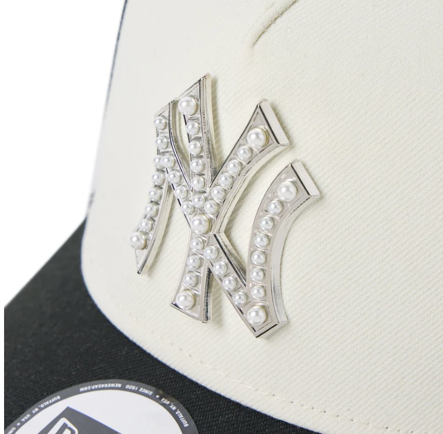 【NEWERA】9FORTY A-Frame MLB パール バッジ Pearl Badge ニューヨーク・ヤンキース ブラック/クロームホワイト【ニューエラ】