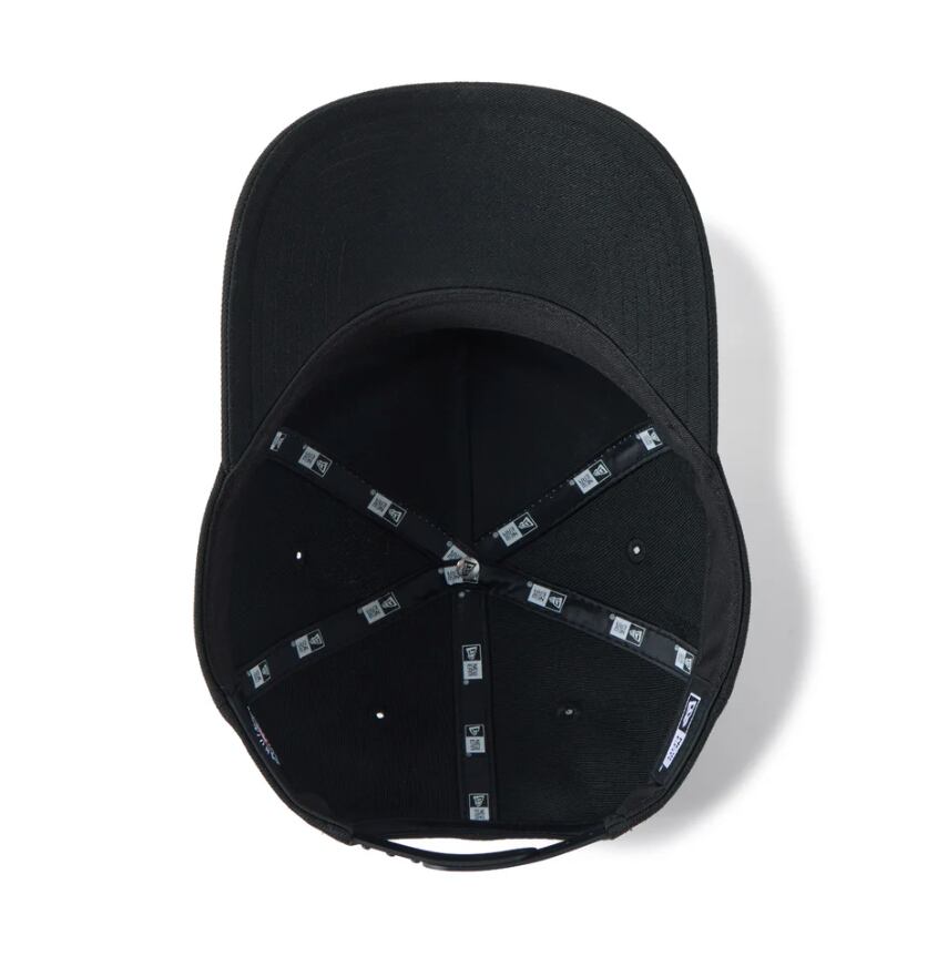シルエットは9FORTYをベースに、フロント部1枚パネルにして上部をつまんだ独特のシルエットが特徴。 フロントパネルの内側に独自の芯を作ることで型崩れしにくいシルエットが保たれます。少し深みがある被り心地です。 バイザー(つば)はあらかじめ着用しやすい状態にカーブしています。リアのアジャスターで頭回り約56.8cmから60.6cmまでサイズ調整が可能です。