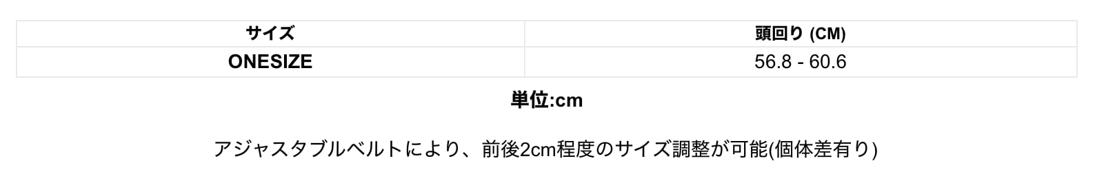 サイズ:約56.8cmから60.6cm(ONE SIZE)