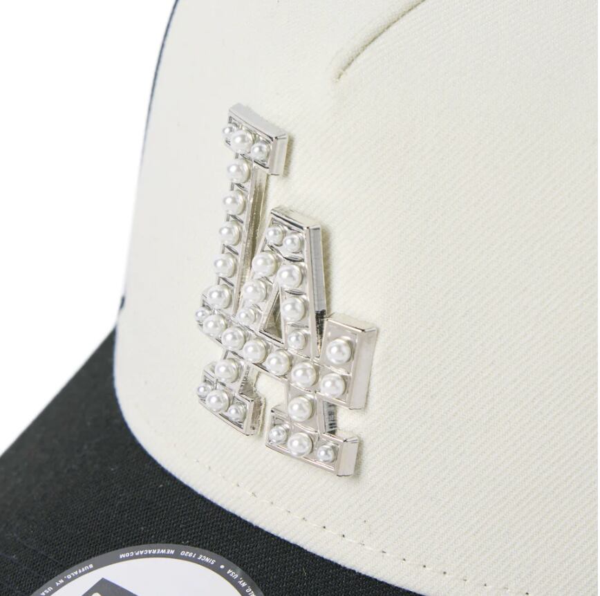 【NEWERA】9FORTY A-Frame MLB パール バッジ Pearl Badge ロサンゼルス・ドジャース ブラック/クロームホワイト【ニューエラ】
