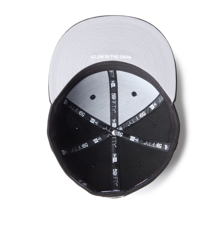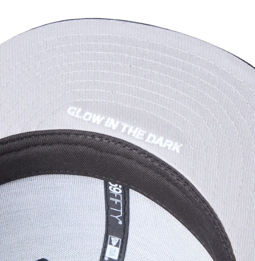 ナイトシーンで映える、遊び心あふれるMLBカスタムキャップ。ナイトシーンをイメージした、ダークトーンのMLBカラーカスタムコレクション。蓄光糸“グローホワイト”を使用し、暗闇でほんのりと光るディテールをプラス。アンダーバイザーに“Glow in the Dark”の文字を施し、見えない部分にもこだわりを。