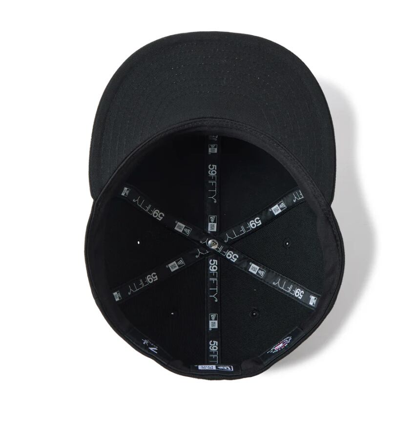 シルエットはニューエラを代表するスタイルの59FIFTY。フロントパネルの内側に独自の芯を作ることで型崩れしにくいクラシックなシルエット。 サイズ調整のない仕様で、約1cm刻みのサイズ展開。頭の小さい方から大きな方まで、ジャストサイズで被ることができます。また、アジャスターがないので、リアのシルエットが美しく、頭の形が綺麗に見えます。