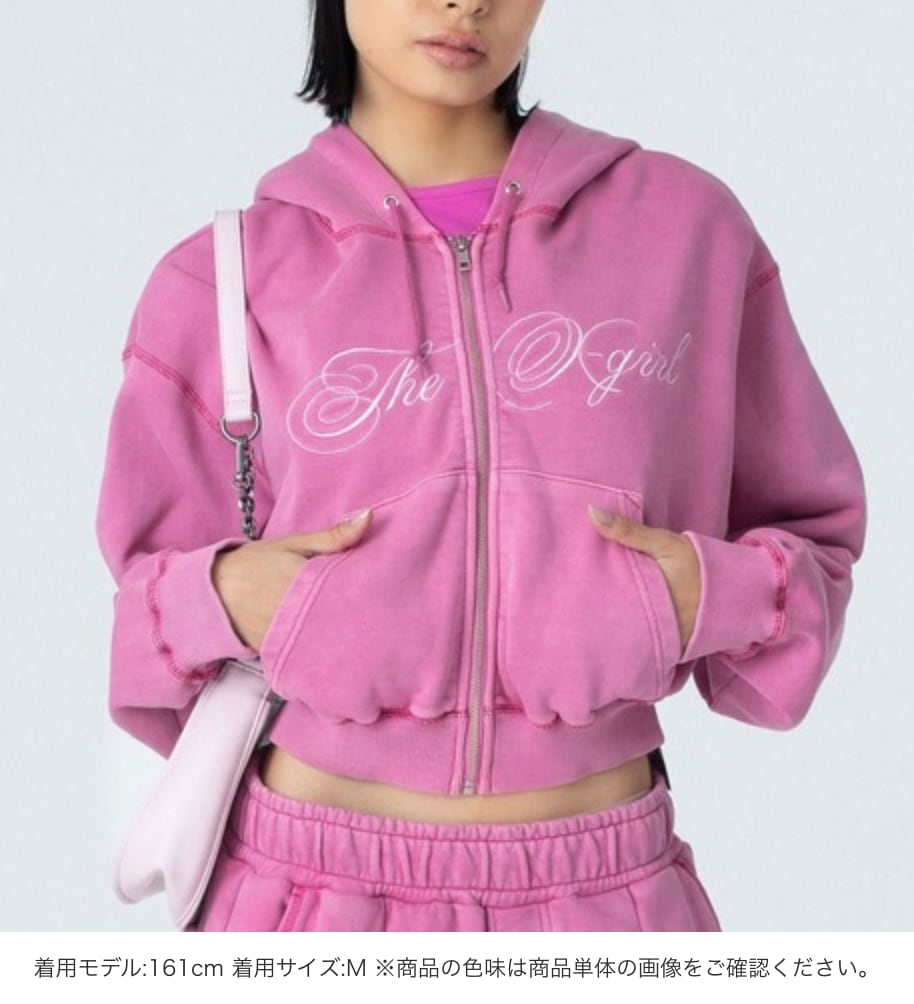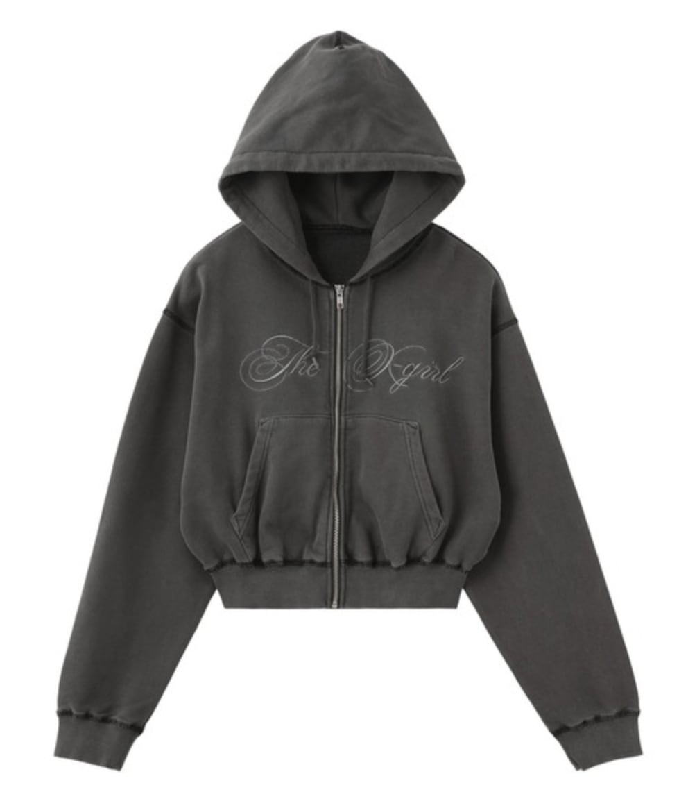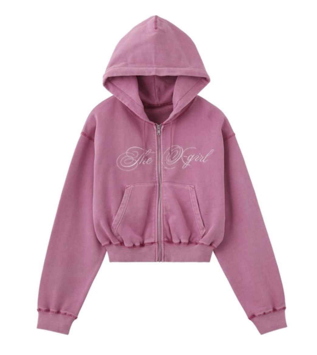 【X-girl】PIGMENT DYED SCRIPT LOGO COMPACT ZIP UP SWEAT HOODIE ジップフーディー ジップパーカー 【エックスガール】