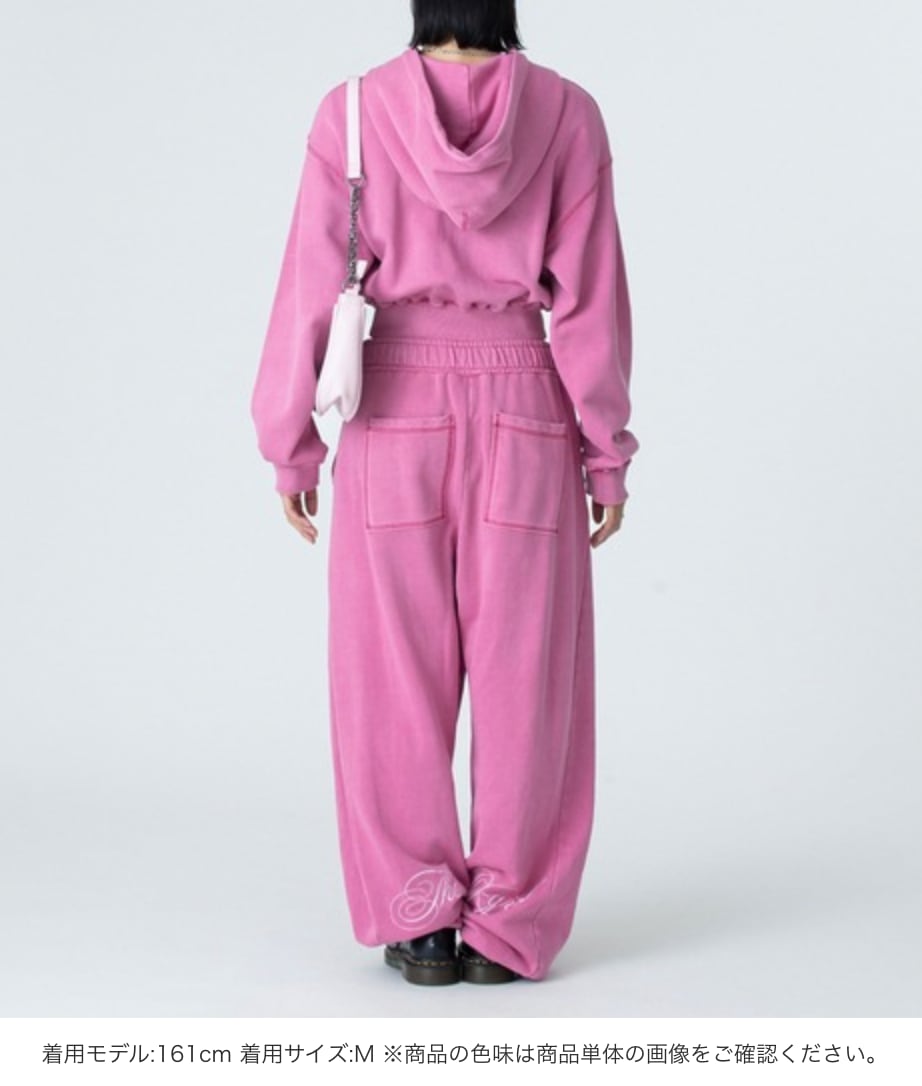 同シリーズのスウェットパンツと合わせて、セットアップでの着用も可能。