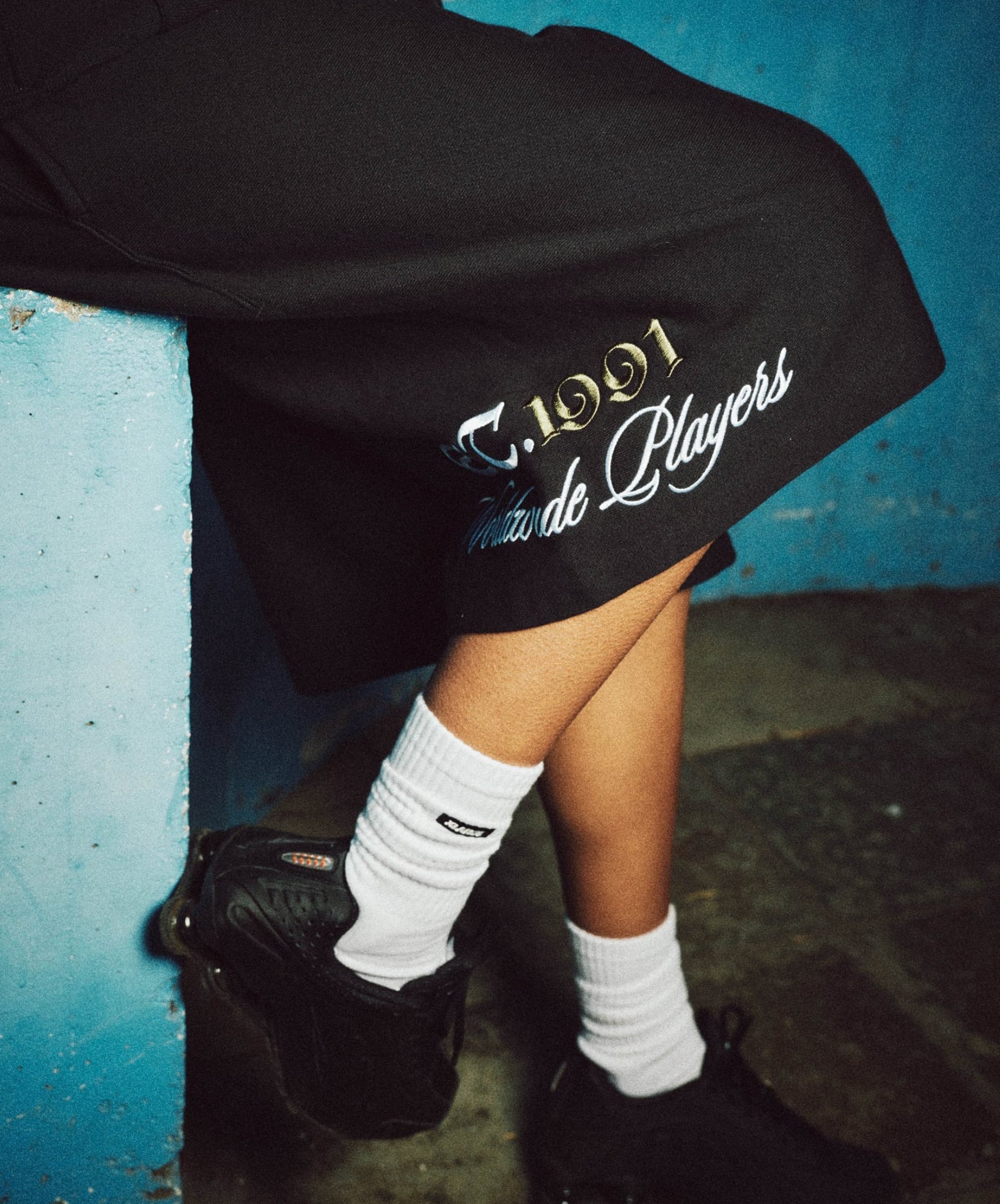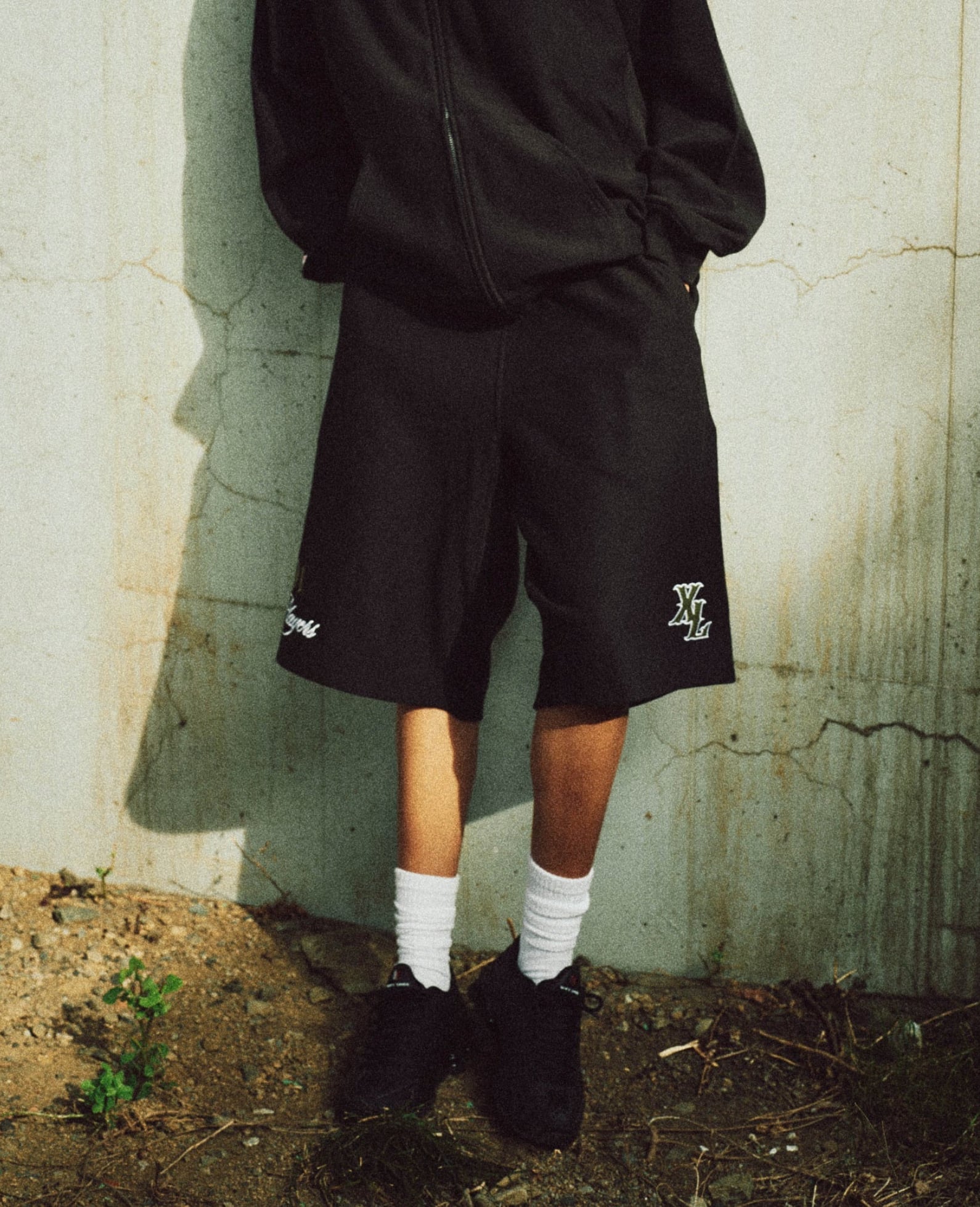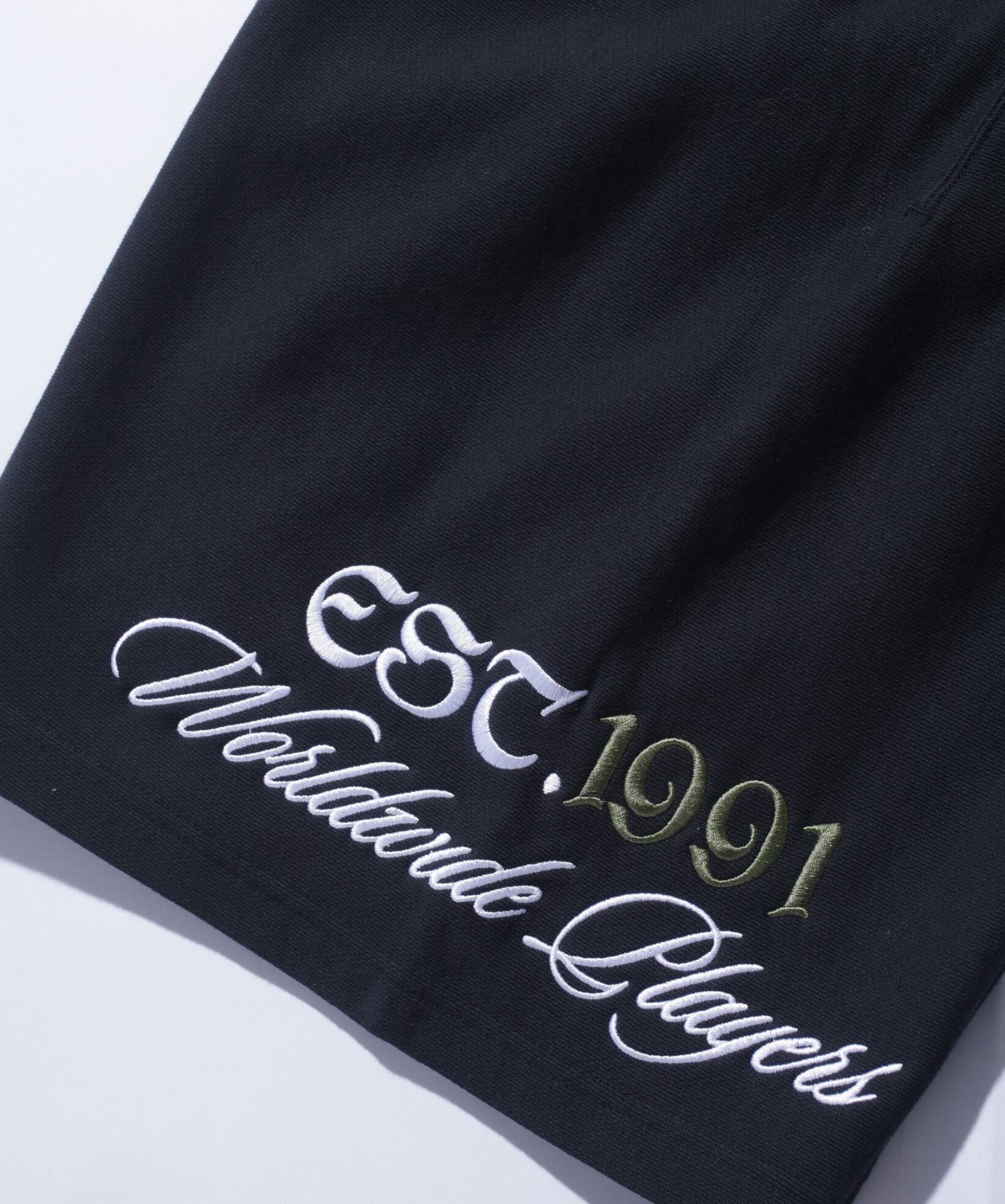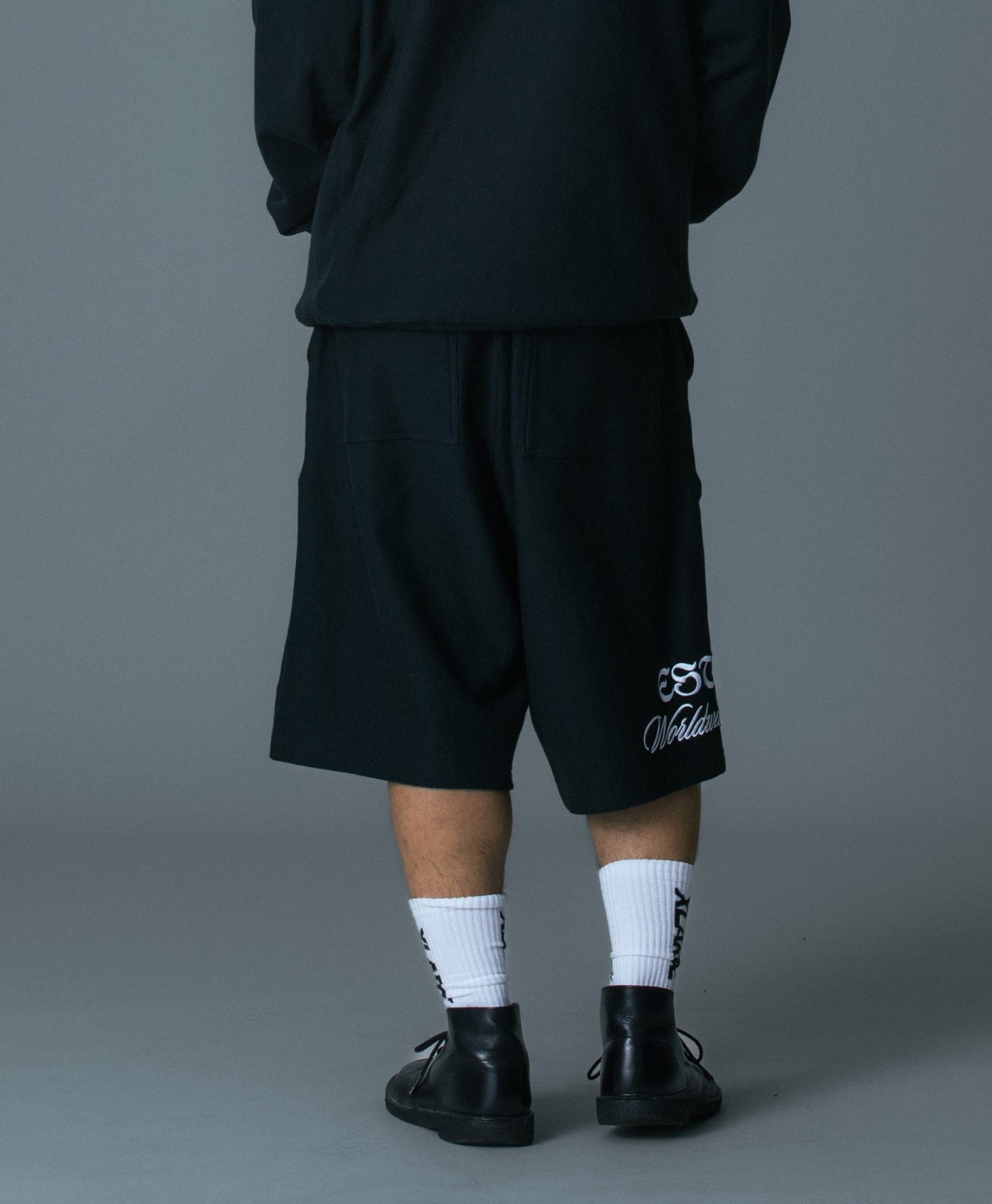 ・右裾の刺繍デザインが魅力のコラボスウェットショーツ