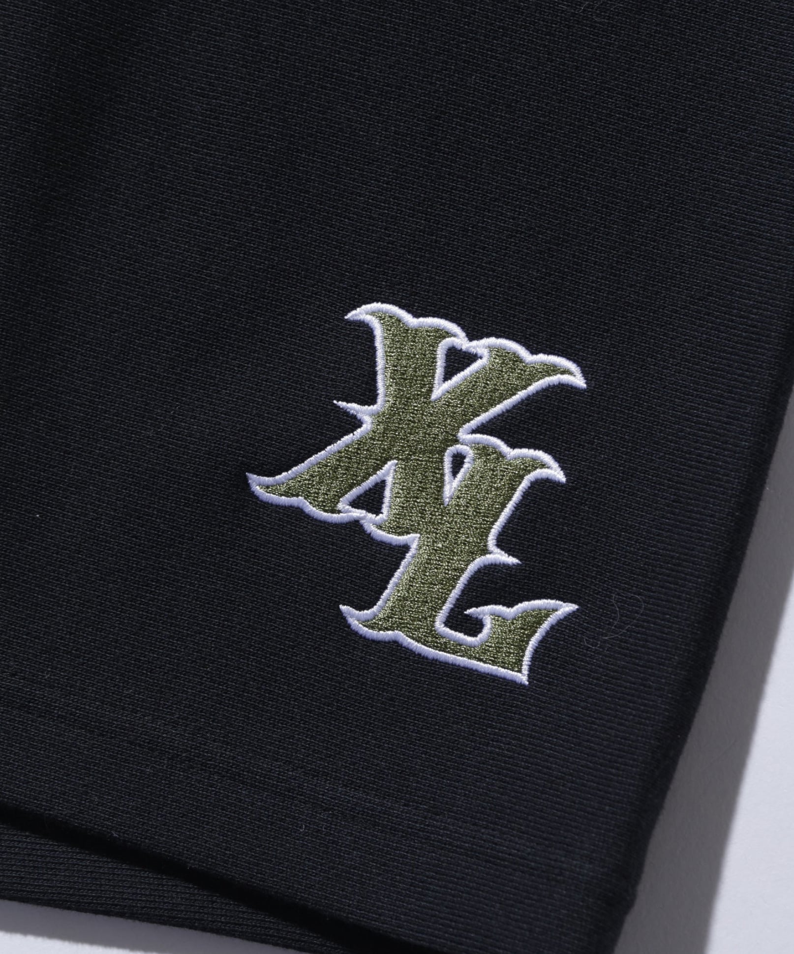 ・左裾にはXLの配色刺繍を配置