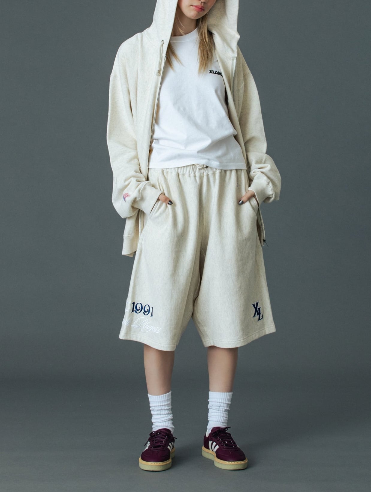 ・同デザインのジップパーカーと合わせたセットアップでの着用がおすすめ