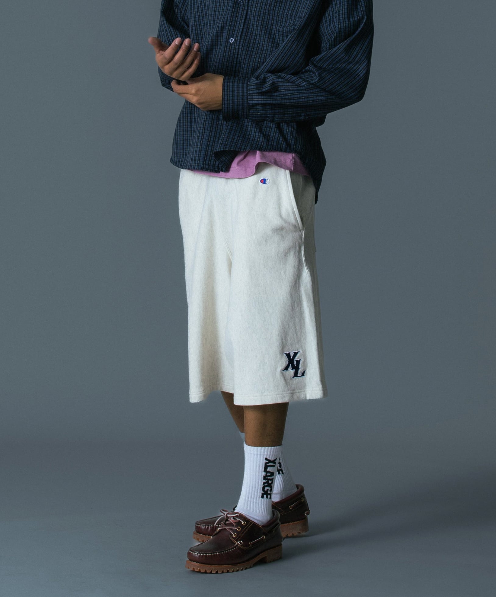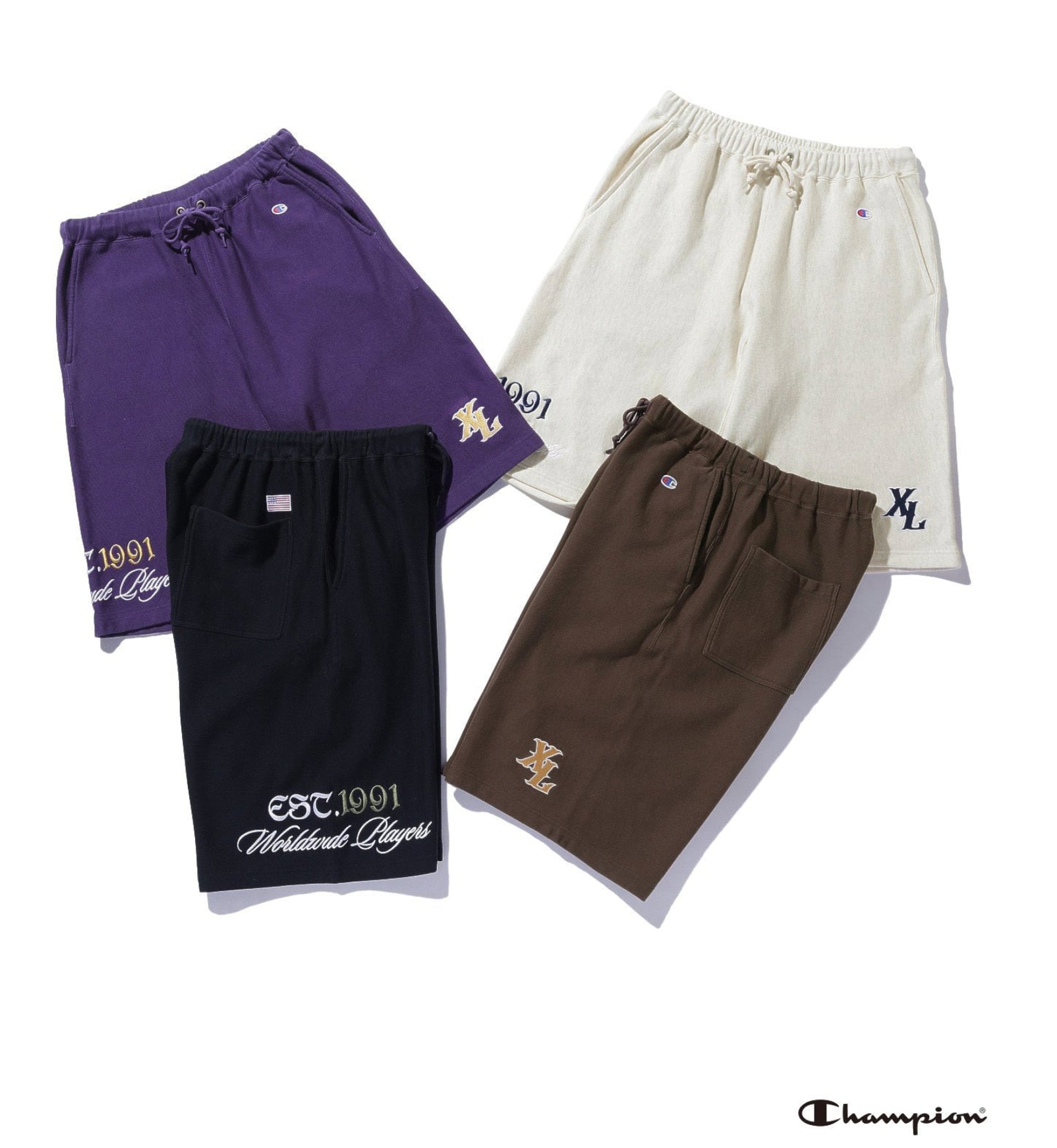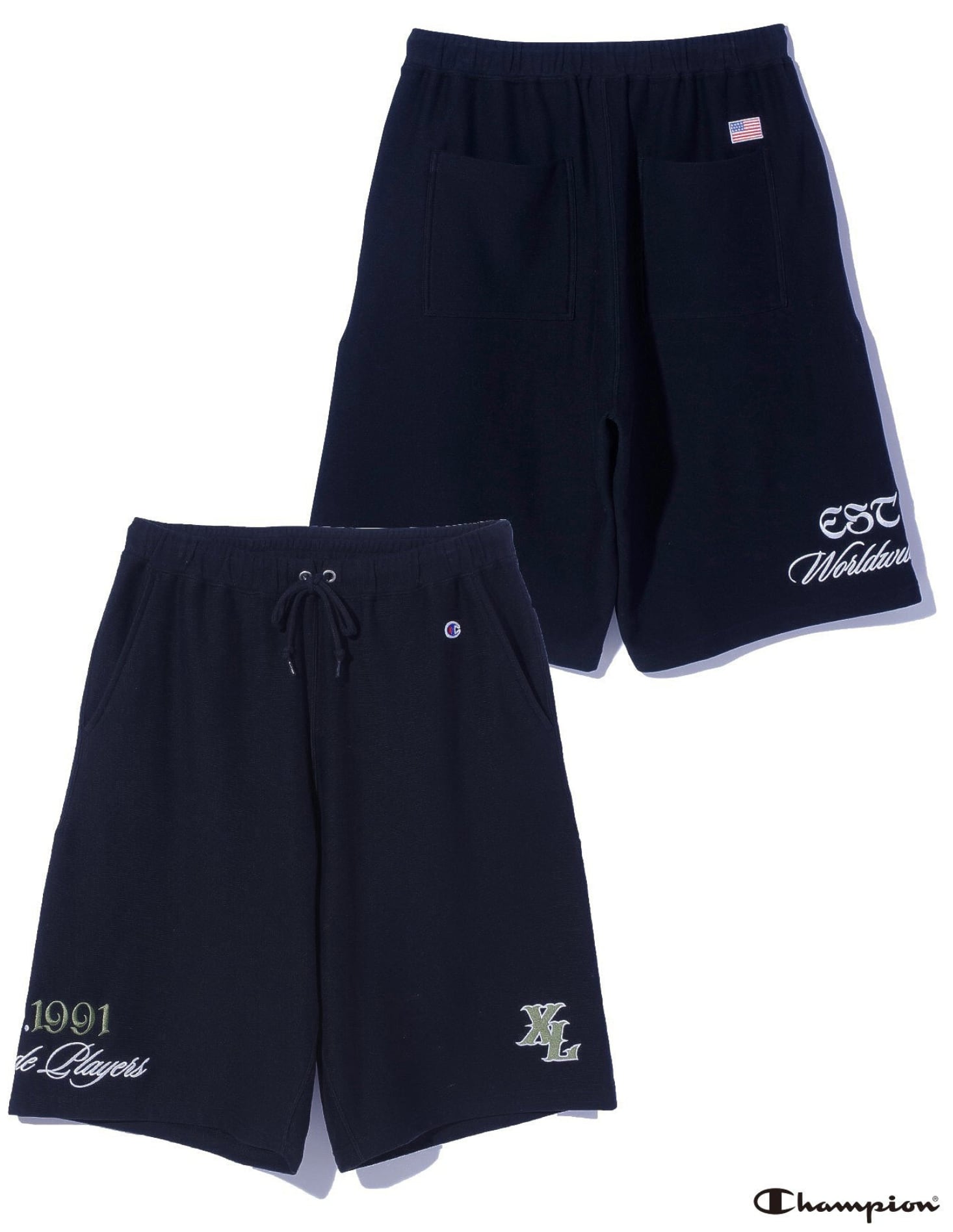 【XLARGE】XLARGE×Champion SWEAT SHORTS チャンピオンコラボレーションアイテム ウェットショーツ 【エクストララージ】
