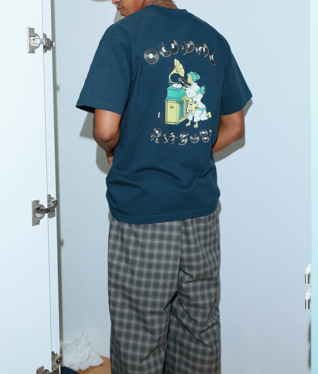 ”OLD PAL”は古くからの親しい友人のことを意味します。明治時代に日本へ輸入された蓄音機。グラフィックの蓄音機、レコードは大正ロマン漂う風情を感じます。ボディは何度着ても首がよれにくいダブルステッ チを採用。洗濯による縮みはT シャツの天敵。お気に入りのT シャツをいつまでも楽しむために、洗濯後の縮率が平均3% 程度に安定する理想の生地を追求。シルエットの変化を極力抑えています。