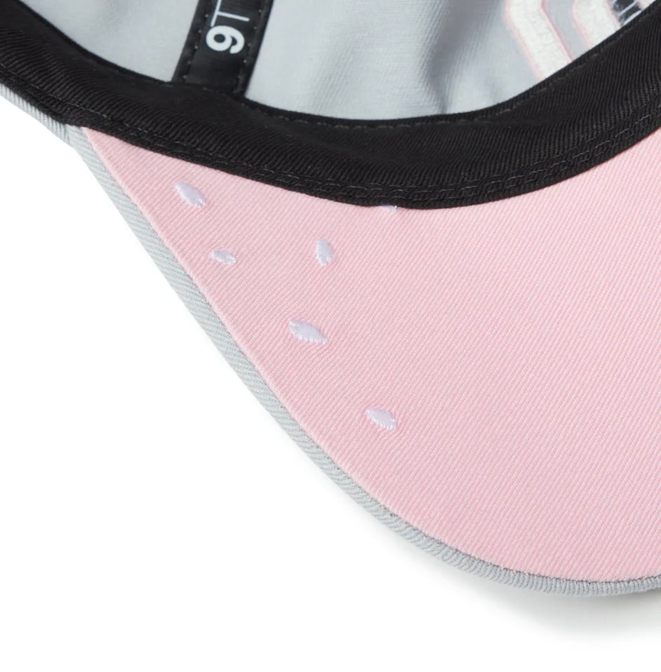 桜の季節に降る雨をテーマにした、情緒あふれるMLBカラーカスタムコレクション。 桜の開花時期に降る長雨「桜流し」をモチーフにした、静けさと華やかさを兼ね備えたデザインです。ボディーカラーにはさまざまなグレーを採用し、雨天と濡れた街並みを表現しています。桜をイメージしたピンクを随所に配色し、アンダーバイザーには花びらをレイアウトしました。