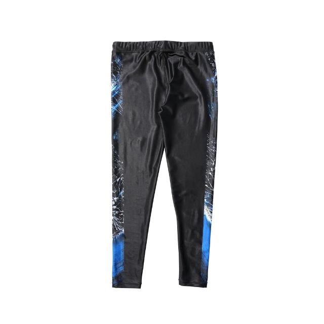 シーズンテキスタイル「夜の水面」がサイドとロゴ部分にレイアウトされたシャープなデザインが印象的なロングスパッツ。